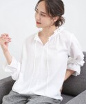 フリル襟ブラウスとレイヤードコーデが可愛く決まる🙆♀️ パンツは低身長さんでもすっきりな丈感がpoint!