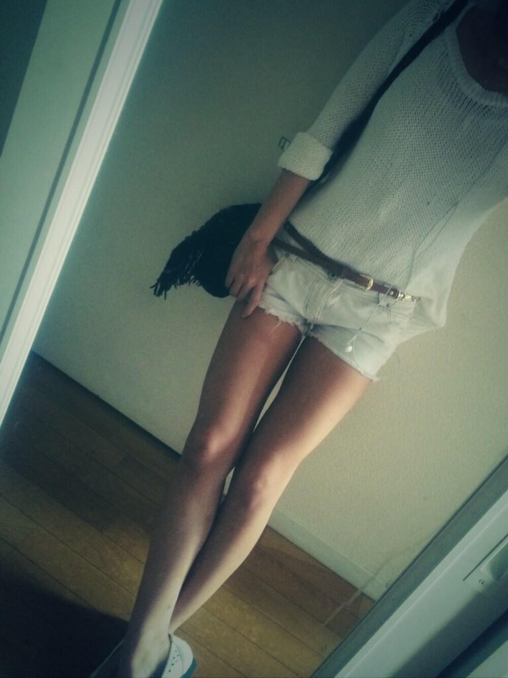 ホワイト系のニット/セーターを着用したレディースの春コーディネートの1枚目の写真