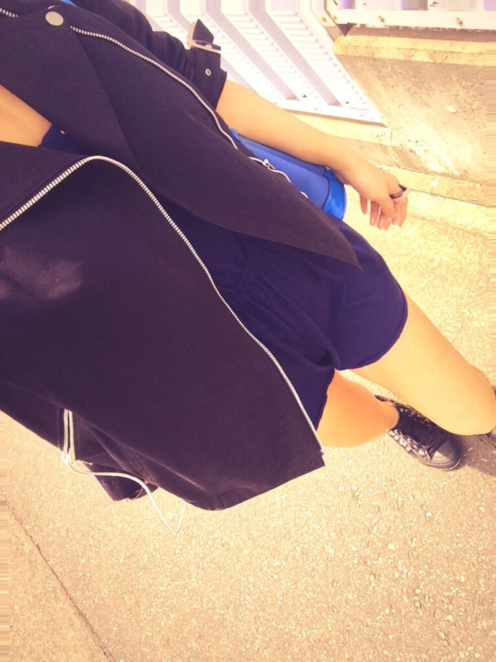 ブラック系のその他パンツを着用したレディースの春コーディネートの1枚目の写真