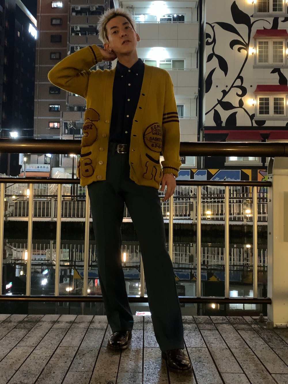 "上品なお洒落さんコーデ" ㅤ ◽︎落ち着いた暗めのトーン配色に黄色のレタードカーディガンを合わせた色の明暗で遊びまとめたコーデ ㅤ ◽︎レタードのカーディガンが前も後ろもスペシャルで古着でしか見ないような最高の1着です ㅤ ◽︎トレンド+自分色=最高のお洒落と自分自身は思っているのでみんなでお洒落を楽しもう🔥