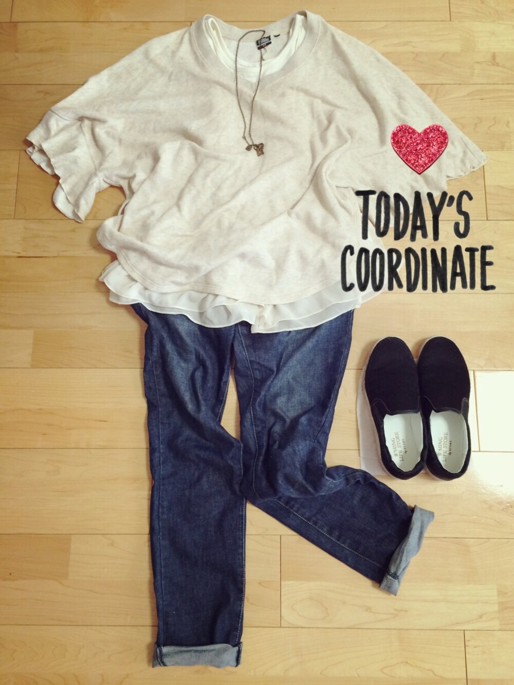 マタニティコーデ ドルマンスエット…UNIQLO インナー…NETSTAR ボトムス…無印 マタニティ アクセ…イーザッカマニア 靴…ビームス