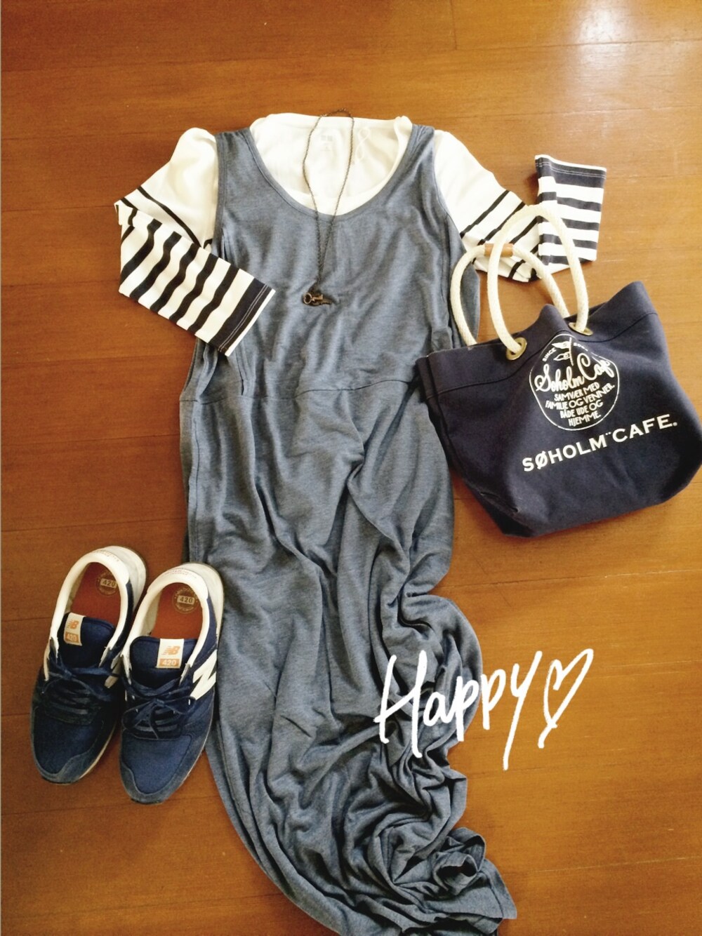 トップス…UNIQLO マキシワンピ…Pearls 靴…ニューバランス アクセス…イーザッカマニア バッグ…sohomcafe