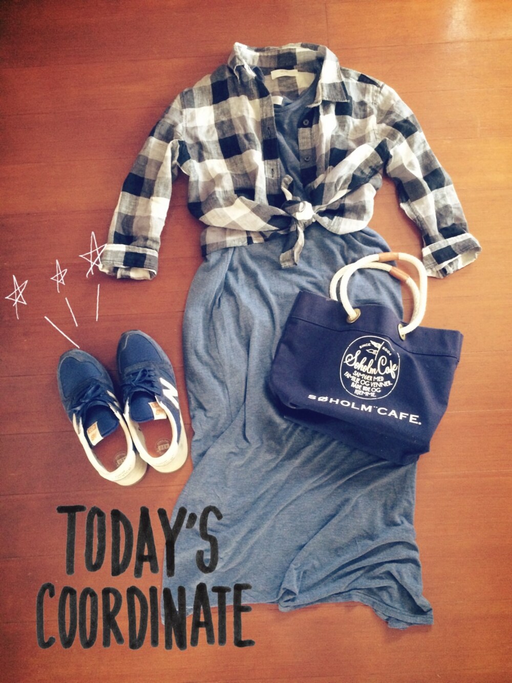 シャツ…UNIQLO マキシ…楽天 マタニティ バッグ…SOHLMCAFE 靴…ニューバランス