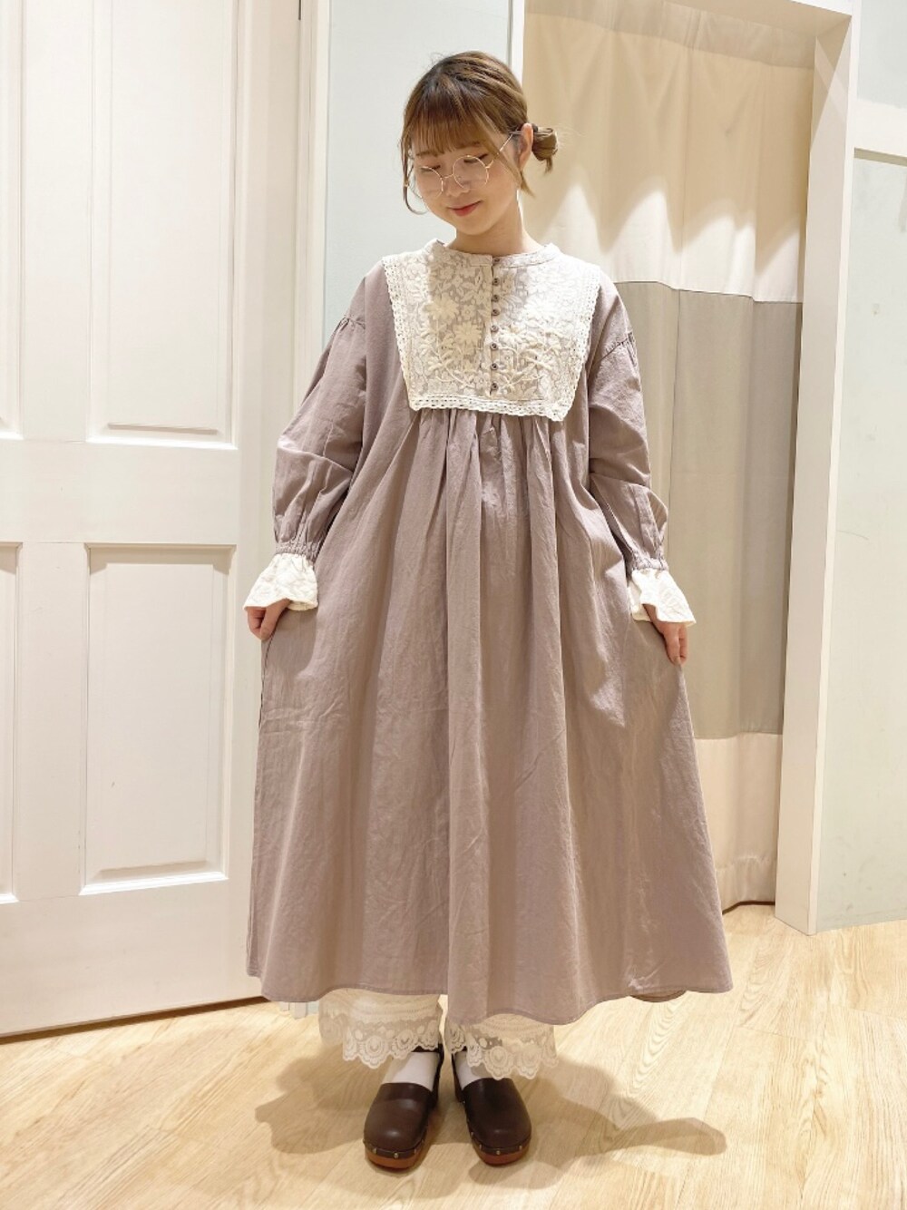 Meiのワンピース「胸元メッシュレースと刺繍のワンピース」を使ったコーディネート