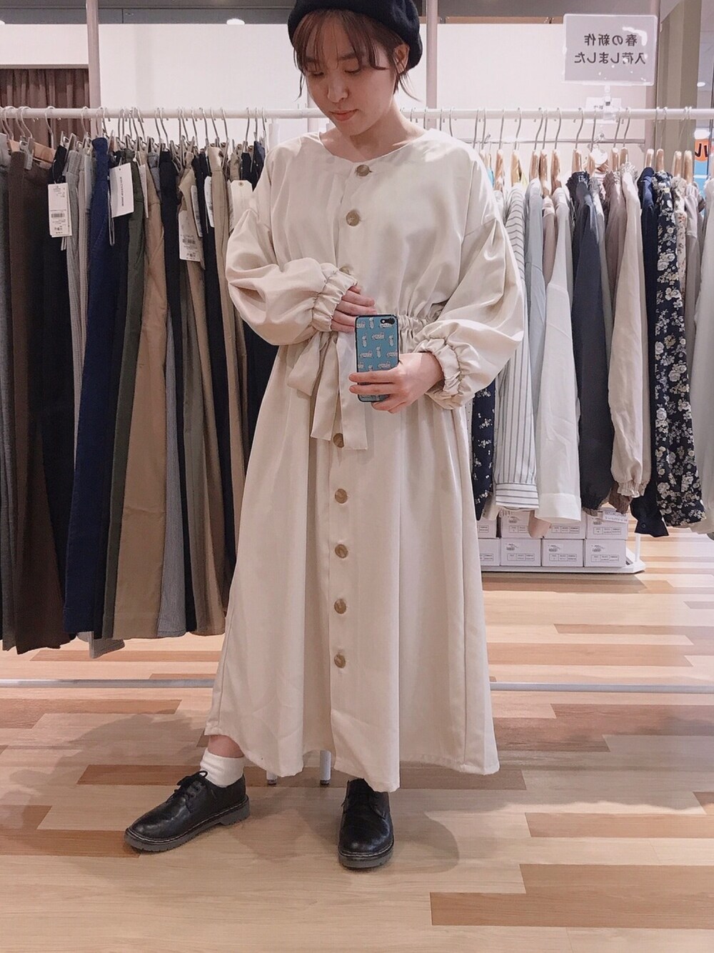 新作ワンピース! たっぷり袖と大きめボタンが すごくかわいいです☺︎ 4色展開のワンピースぜひ チェックしてみてください🍃