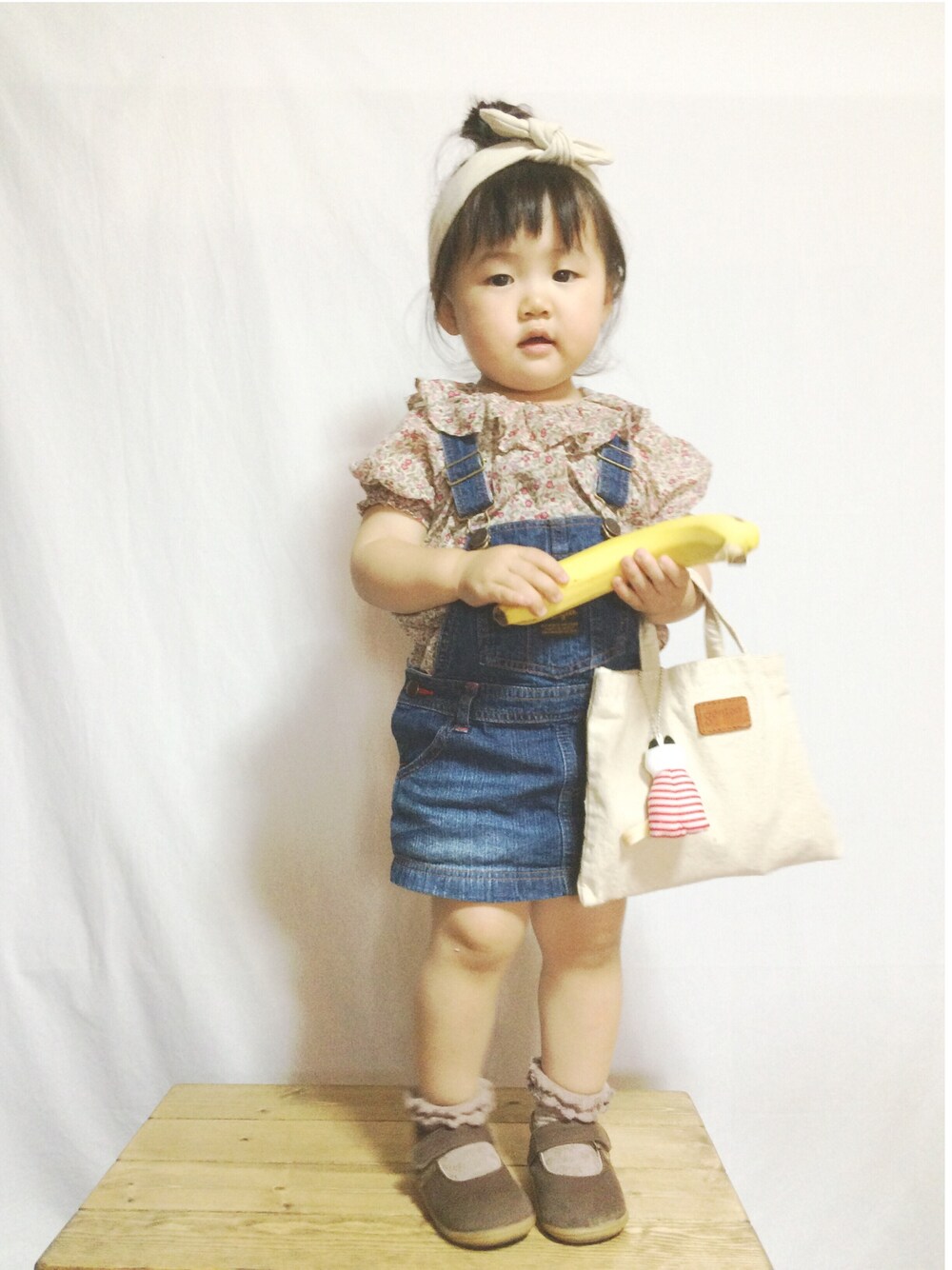 フリル襟ブラウスが好き過ぎて 半袖バージョン♡ ばぁちゃんにバナナ買ってもらって 嬉しくなっちゃったよー‼︎笑