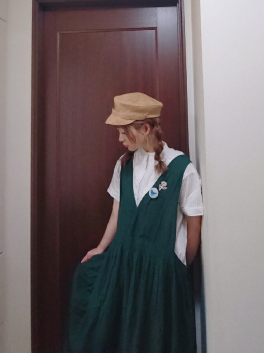 mek0のワンピース「リネン起毛ジャンパースカート」を使ったコーディネート