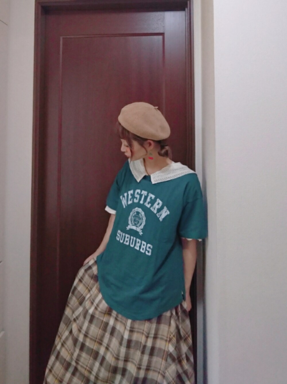 mek0のスカート「マドラスチェックスカート」を使ったコーディネート
