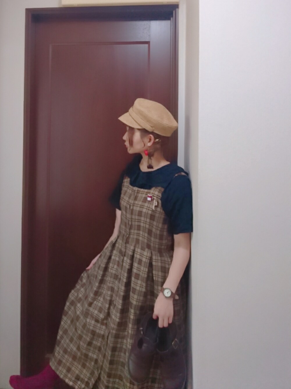 mek0のワンピース「モールチェックジャンスカ」を使ったコーディネート