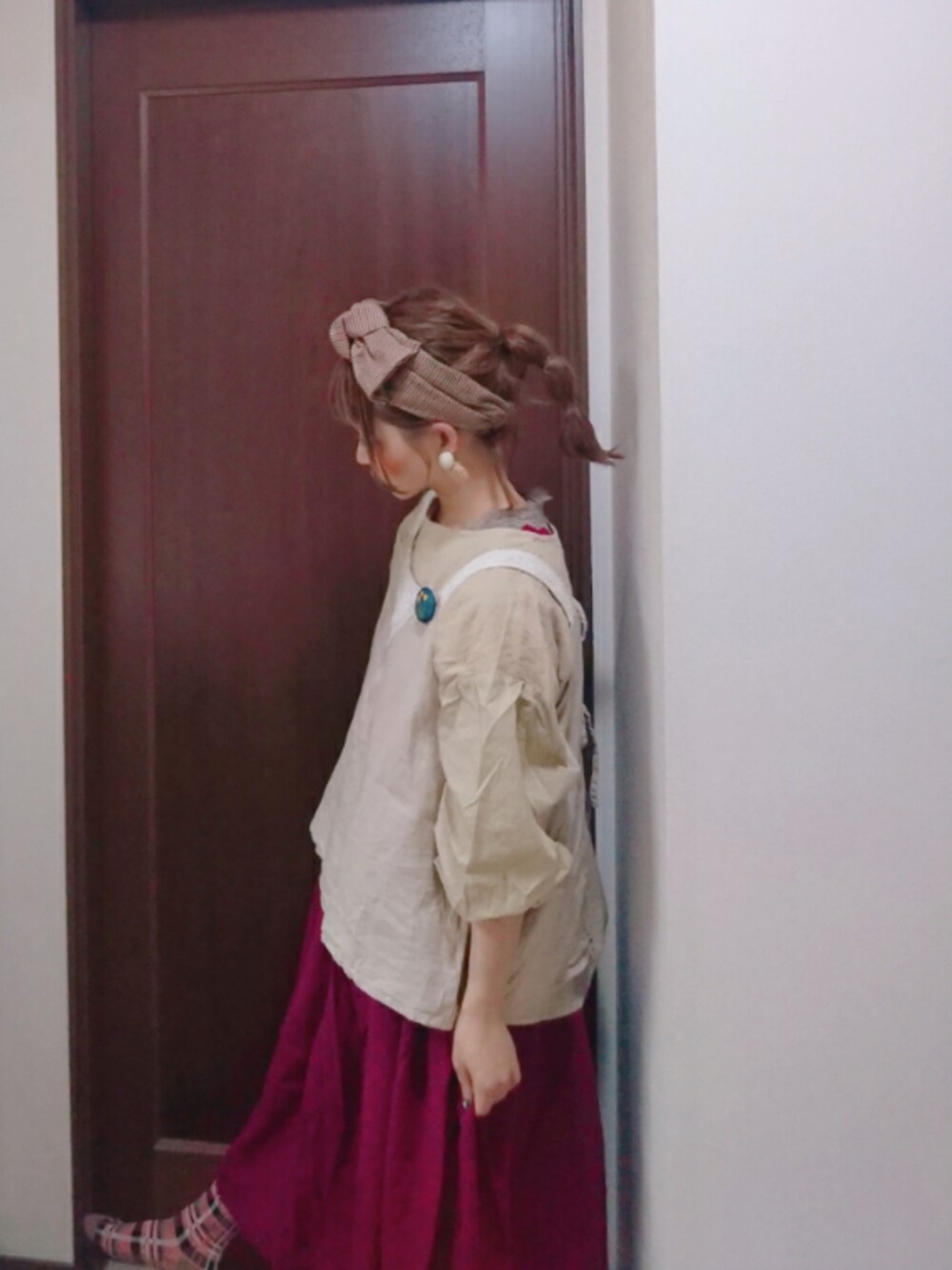 おーやぎ🐐こーで いいね*ふぉろー*お気に入り とっても嬉しいです(*´艸`)♥️ 今日はSM2のノースリワンピに ブラウス👚ビスチェを重ねて スカート風に😆 ヘアバンドと靴下は大好きな チェック柄です😆💕