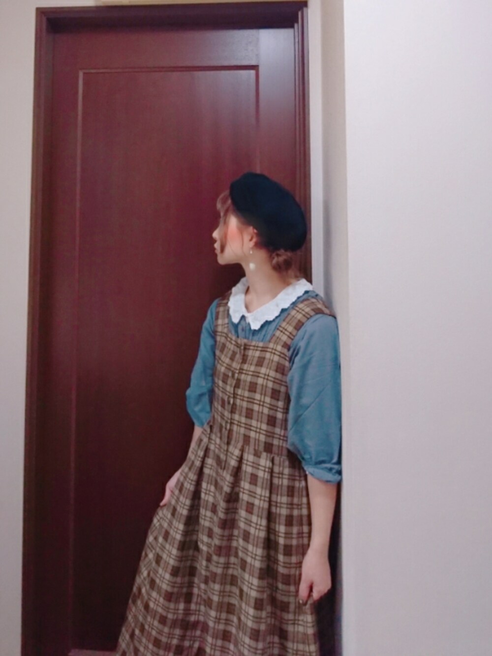 mek0のワンピース「モールチェックジャンスカ」を使ったコーディネート