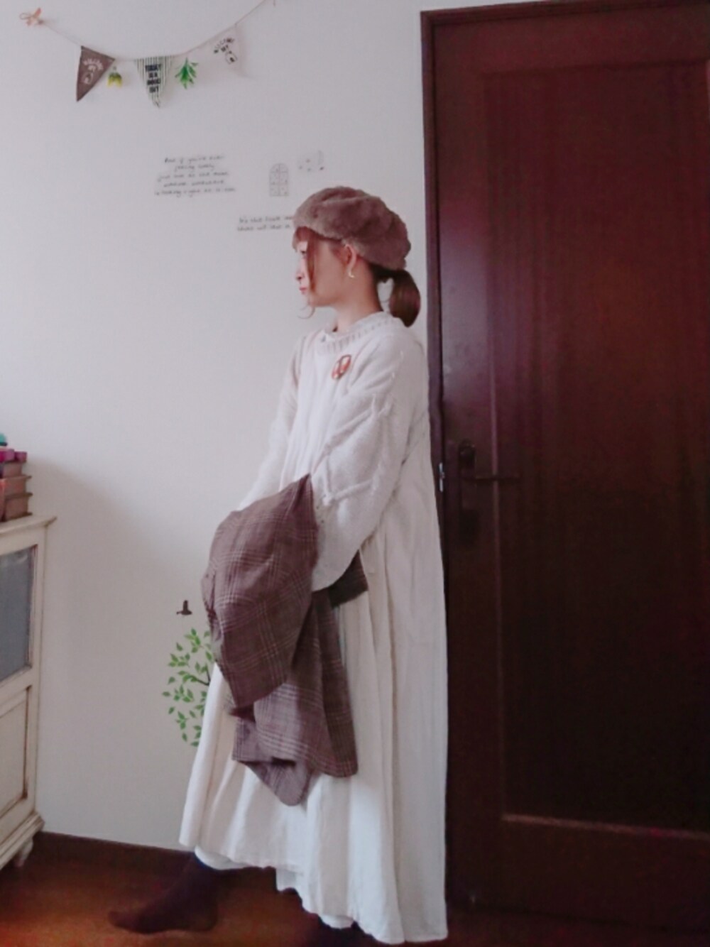 おーやぎ🐐こーで いいね*ふぉろー*お気に入り とっても嬉しいです(*´ω`*)♥️ おーるほわいとコーデ👦👩💕 グレンチェックのアウターを りんくさせました😆