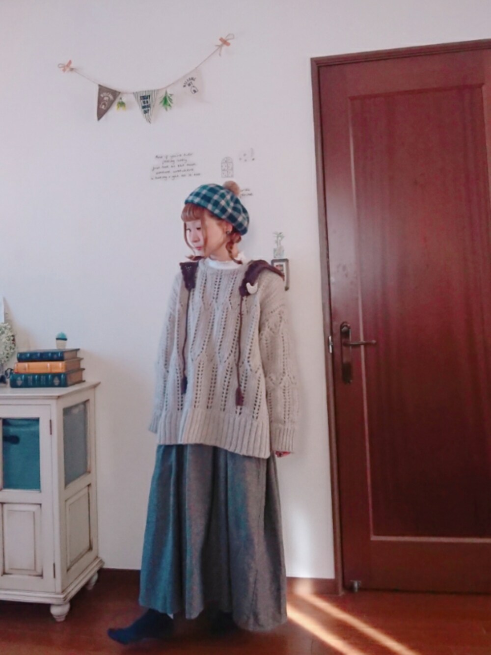 mek0のジャンパースカート「ウール混ジャンパースカート」を使ったコーディネート