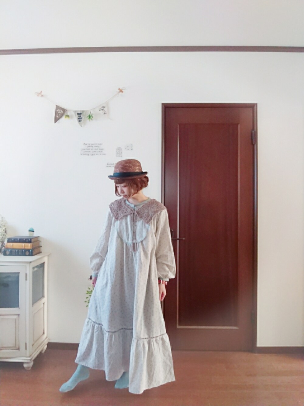 mek0のワンピース「花柄プリントパイピングワンピース」を使ったコーディネート
