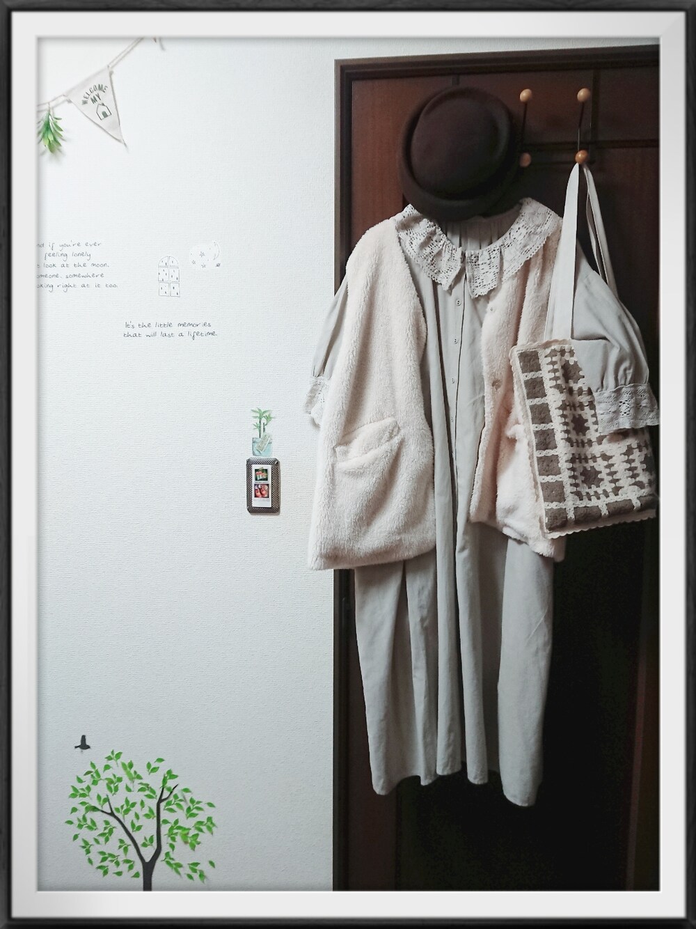mek0のワンピース「レース衿ワンピース」を使ったコーディネート