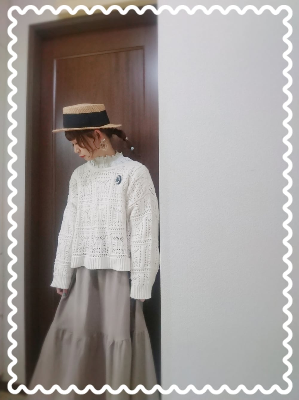 おーやぎ🐐こーで いいね*ふぉろー*お気に入り ありがとうございます(*´艸`)🌼 ホワイト✖️ベージュな日😆 SM2の前後着のニットを 今日はリボン後ろで着てみました🎀