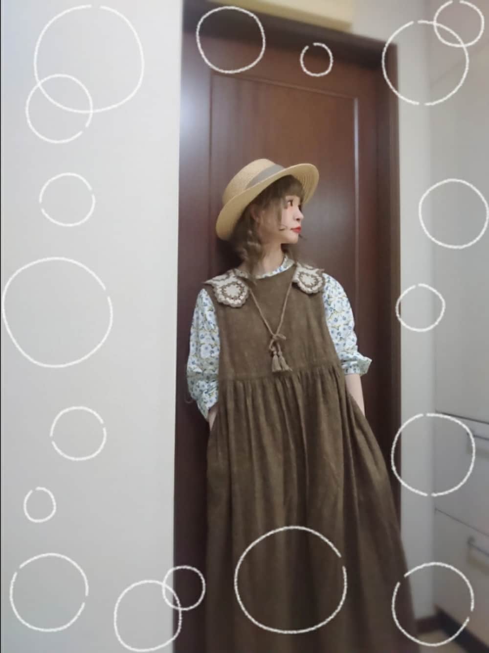 おーやぎ🐐こーで いいね*ふぉろー*お気に入り ありがとうございます(*´艸`)🌼 レイヤードスタイル👚👗 ブラウスの柄が花とトリで 可愛いんです🐦💕