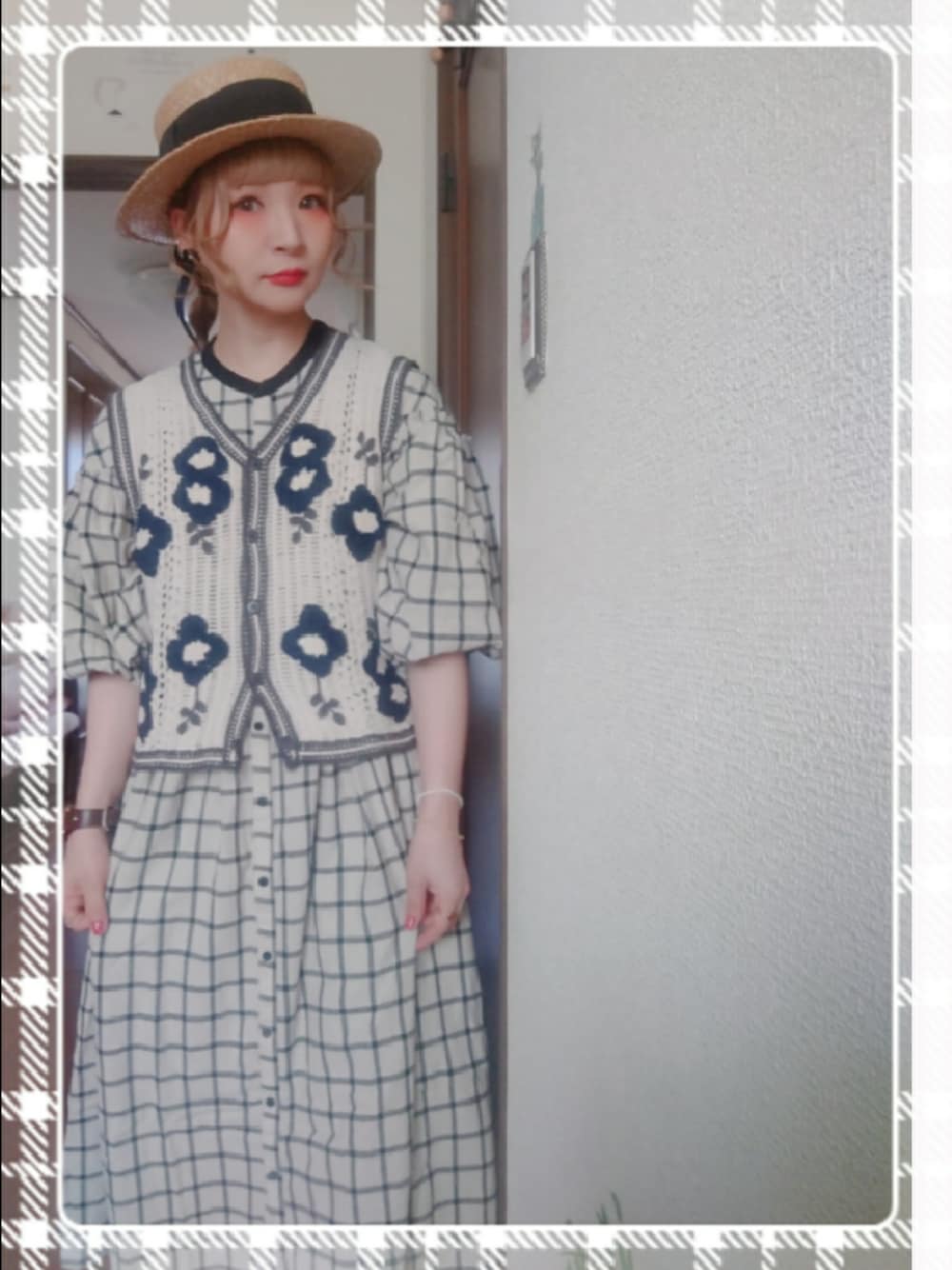 mek0のベスト「さがら刺繍ニットベスト」を使ったコーディネート