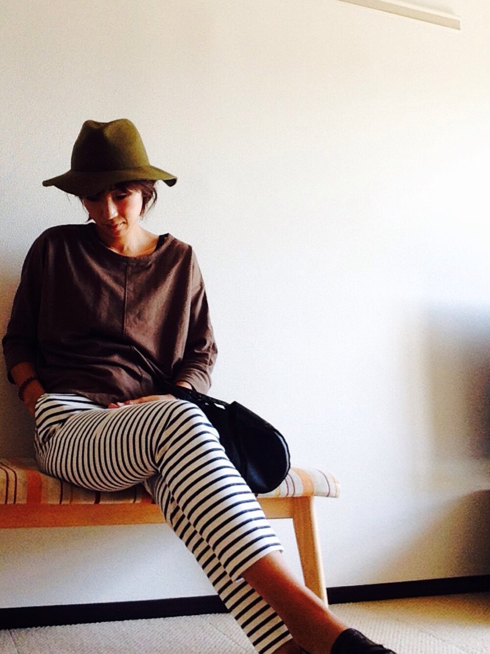 フェルトハットをアクセント中。 自転車で娘の幼稚園送迎には向かないwww 風でぶっ飛ぶわ(笑) …でも必死でかぶるわたし。