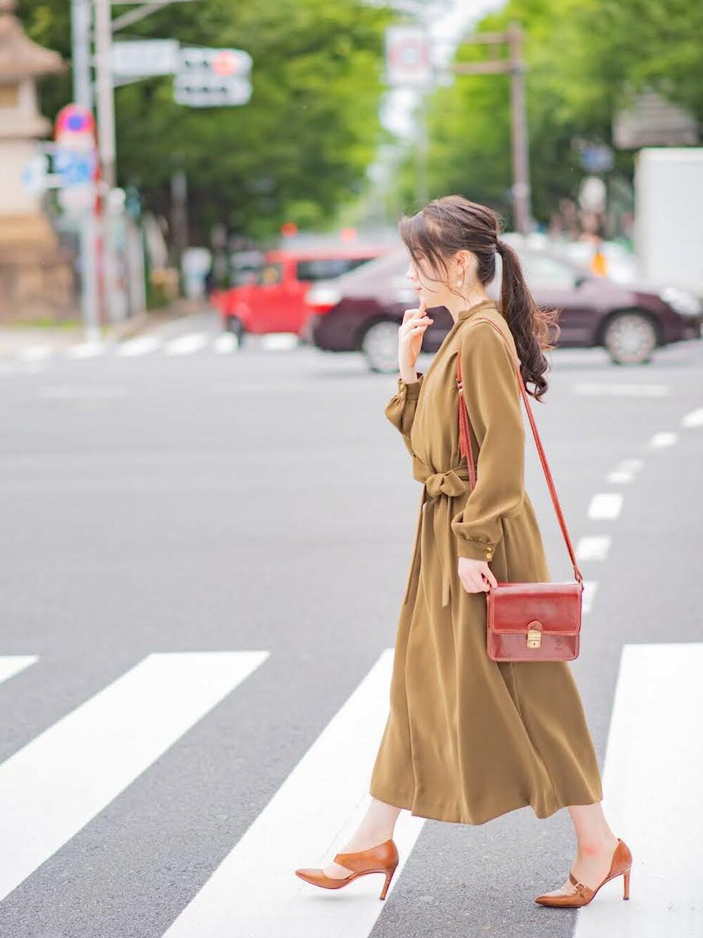 お茶のお稽古の帰りに買い物に行く。 一枚で決まる上品なコーデです! 【写真のコーデ】 ・MELETY 3way ワンピース カーキ ・インナーはレース付きインナーでワンピースのVネック ・小さめハンドバック ・足元は黒かベージュの可愛いピンヒール ・ピアスや華奢なアクセサリーで女子っぽさを出す 商品URL:https://melety.store/products/3waydress_karke