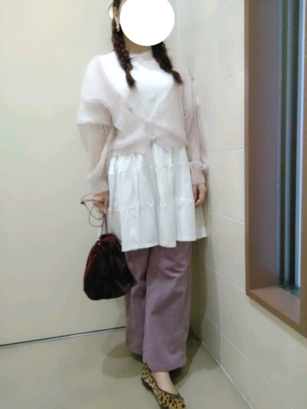 このカーデ、編み目がかなりざっくりしてますが、結構暖かいんです☺ パンツはGUのコーデュロイワイドパンツのパープルです🙌