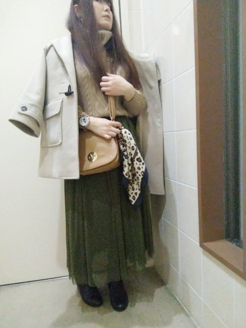 こんばんは! 遅くなりましたが 明けましておめでとうございます⛩️ 2020年もよろしくおねがいします☺️ 今日のコーデはタートルネックのニットにロングチュールスカートを合わせました🙌 アウターはダッフルコートです✨