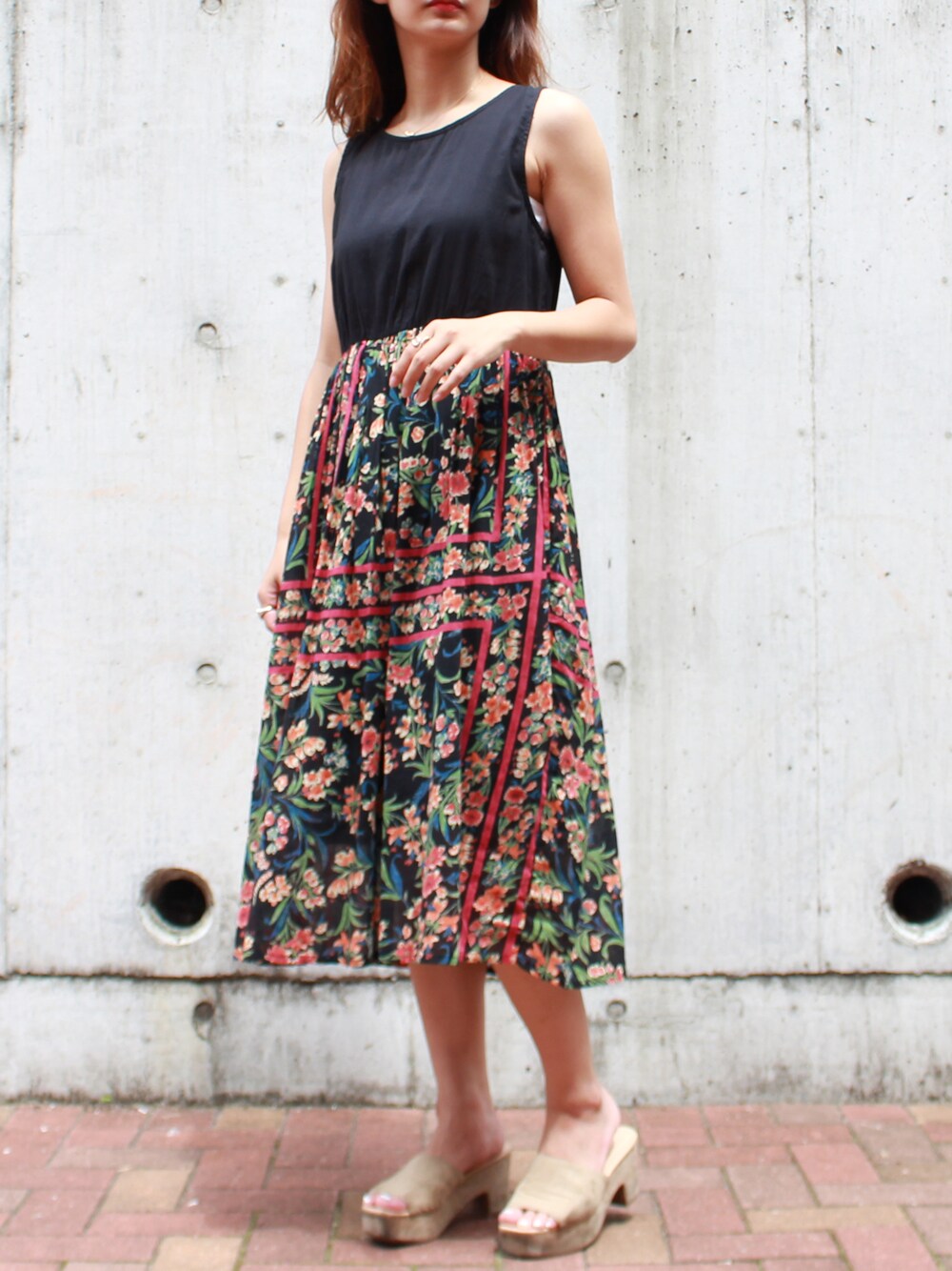 真夏にピッタリ人気のワンピース♡ オシャレなフラワーデザインと 引き立つラインがミックスされ何とも言えないデザイン◎ リゾートに、お買い物にと1枚は持っておきたい1点◎