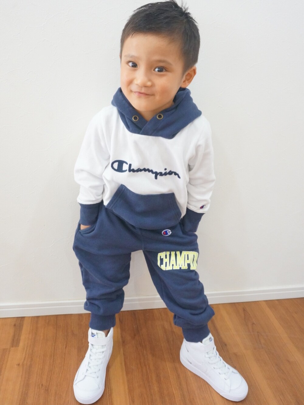 ご覧いただきありがとうございます。 お気に入りしてもらえると嬉しいです。 百貨店で購入したチャンピオンのスウェット★ 公園遊びはセットアップで簡単コーデ