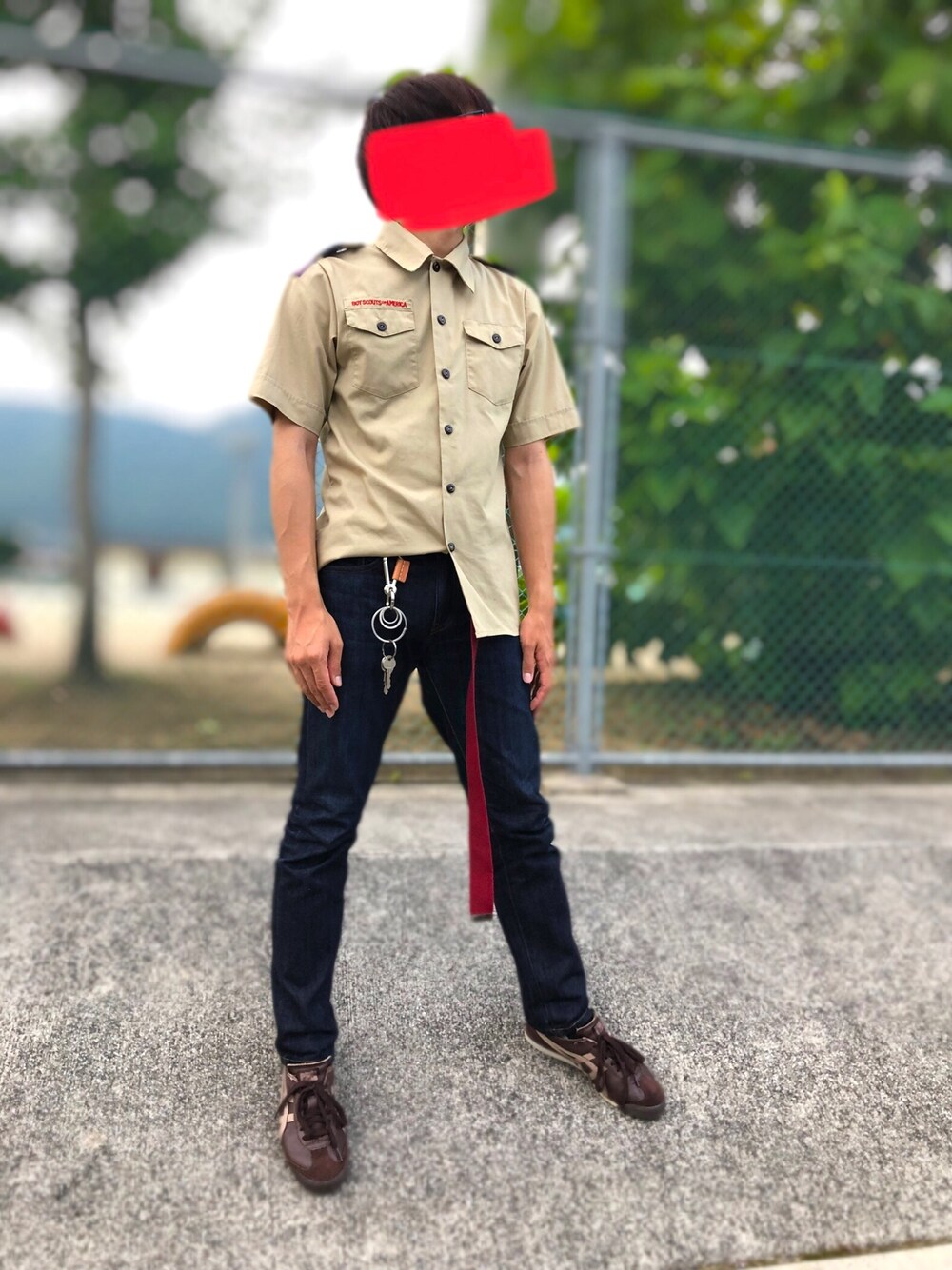 こんばんは!今日は、休日コーデをしたのであげてみました! ボーイスカウトシャツは、去年、地元の古着屋さんで半額の1000円で買えたので、超お買い得アイテムでした! かなりカジュアル目なので、カジュアル系コーデする時にしか使えませんが笑、主役級アイテムだと思います! あとは、主役を引き立たせるための細身のデニムパンツ、スリムなデザインのONITSUKA TIGERのスニーカーを合わせました! カジュアルになり過ぎないよう、色使いに気をつけてコーデしました! あとは、色のアクセントでワイン色のガチャベルト、上品さを出すためにHender Schemeのキーリングを付けました! 最後まで見てくださってありがとうございます! また投稿します!