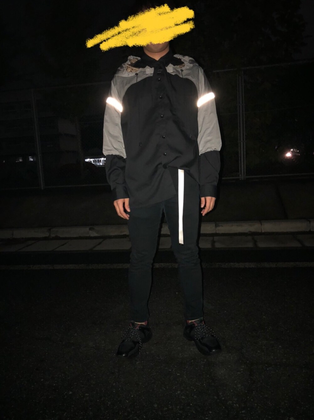 リフレクター素材を生かしたコーデしてみました。 リフレクター付きのフードは取り外し可能でいいアクセントになります! あとはほぼ黒で統一してフードを主役に目立たせました! また投稿します!