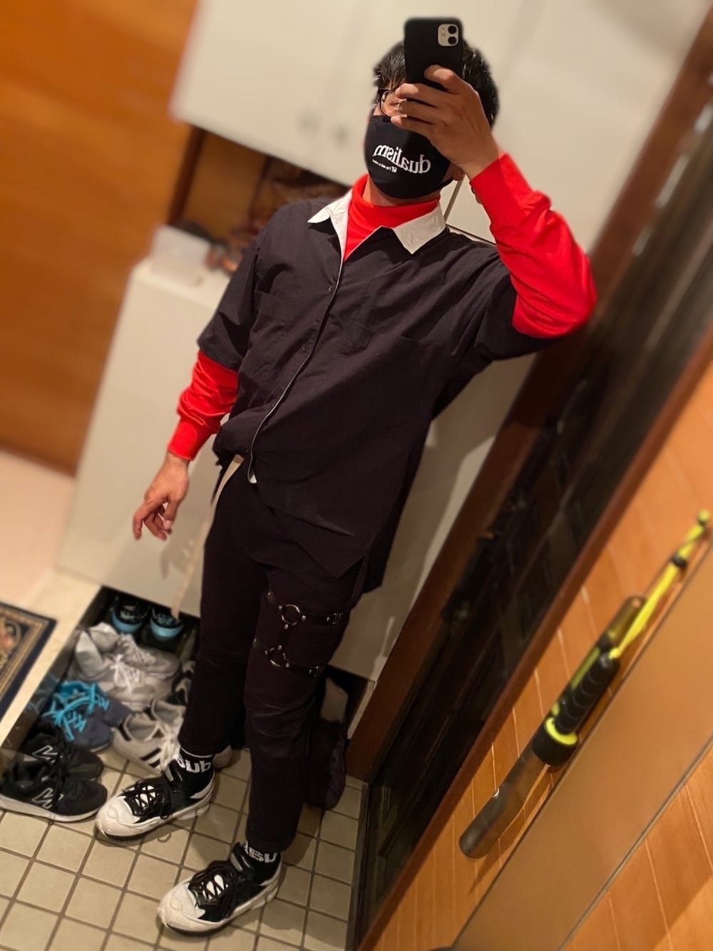 おはようございます、更新無い期間は、なかなかこの時間に起きれませんでした。。。 今日は新入りを使ったストリートコーデです。 BLACK&BLUEのシャツは、ハリのある素材やクレリックシャツ風な白襟切り替えに惚れ、購入しました! UNIQLO UのタートルネックTシャツは、ワゴンセールで500円ほどで見つけたんですが、色とサイズが合えばこの価格なら絶対買いですね。 そこに、原宿発のDualismというブランドの黒マスクとソックスを取り入れました! マスクにある文字は、ネットの画像認証をパロった文字で、遊び心があります。 ソックスはアンクル少し上に足を1周するようにdualismと書いてあり、アクセント効果があります! 最後まで見て下さりありがとうございます、また投稿します!