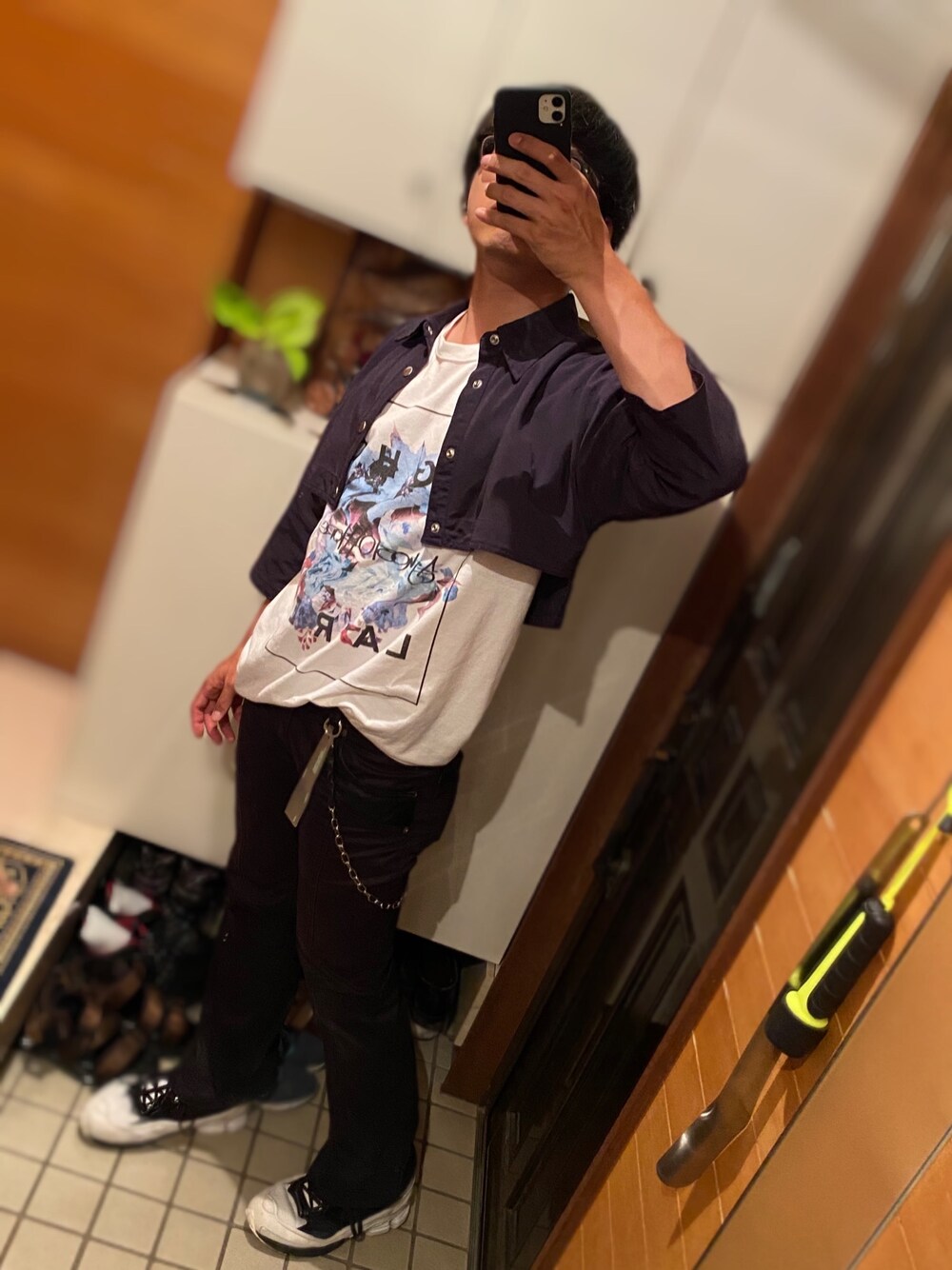 おはようございます。 今日は撮り溜めてた変態アイテムを使ったコーデです。 Nuggetsのショート丈コーチジャケットは奇抜さに惹かれて購入しました。 普通のコーデにプラスするだけで変態コーデの完成です。笑 あとは柄が綺麗で購入したバンドTシャツやいつものモノトーンストリートアイテムを合わせました。 最後まで見て下さりありがとうございました、また投稿します!