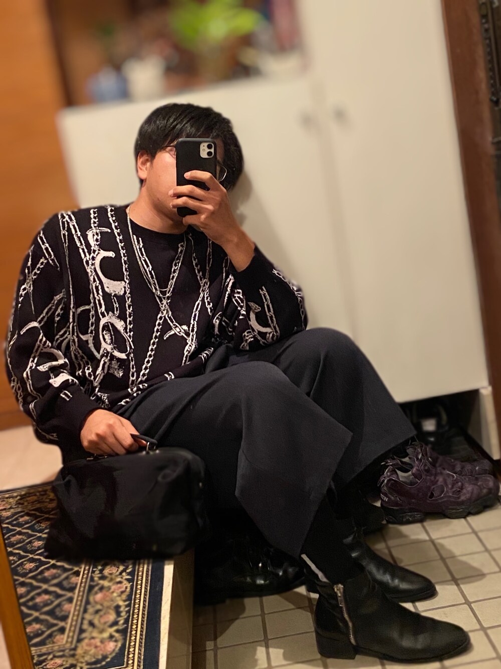 おはようございます。 今日は以前買ってたアイテムを初めて着用しました。 LAD MUSICIANのニットはチェーンや手錠柄がとても可愛いです。 作りは身幅が広く、ワイドに着こなせます! 袖口は細く、袖丈も捲れば変えられます! あとはそこにネックレス付けたり、ギャルソンのバッグを入れてモード寄せにしたり、足元はいつものセットにしてモード感をプラスしました。 最後まで見てくださりありがとうございます。 また投稿します!
