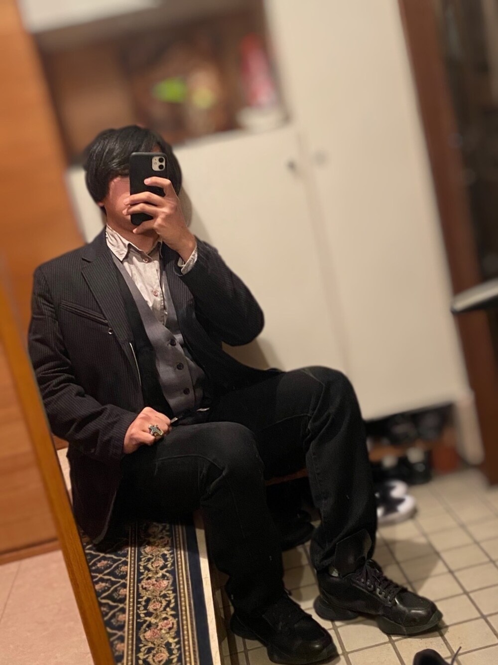 おはようございます。 今日はかっちり風コーデです。 ヨーク仕立てのシャツの上に、2枚のベストを重ねたようなデザインのベストを合わせ、 その上にストライプ柄のジップアップジャケットを合わせました。 同じようなグレーのアイテムですが、色配分で深みを出すことにチャレンジしてみました。 珍しくリングもつけてみました。 昔古着屋で1000円セールのところにあり、ゴツいながらもターコイズブルーの色が可愛く、購入しました。 下半身側はオールブラックにしました。 最後まで見てくださりありがとうございます、また投稿します!