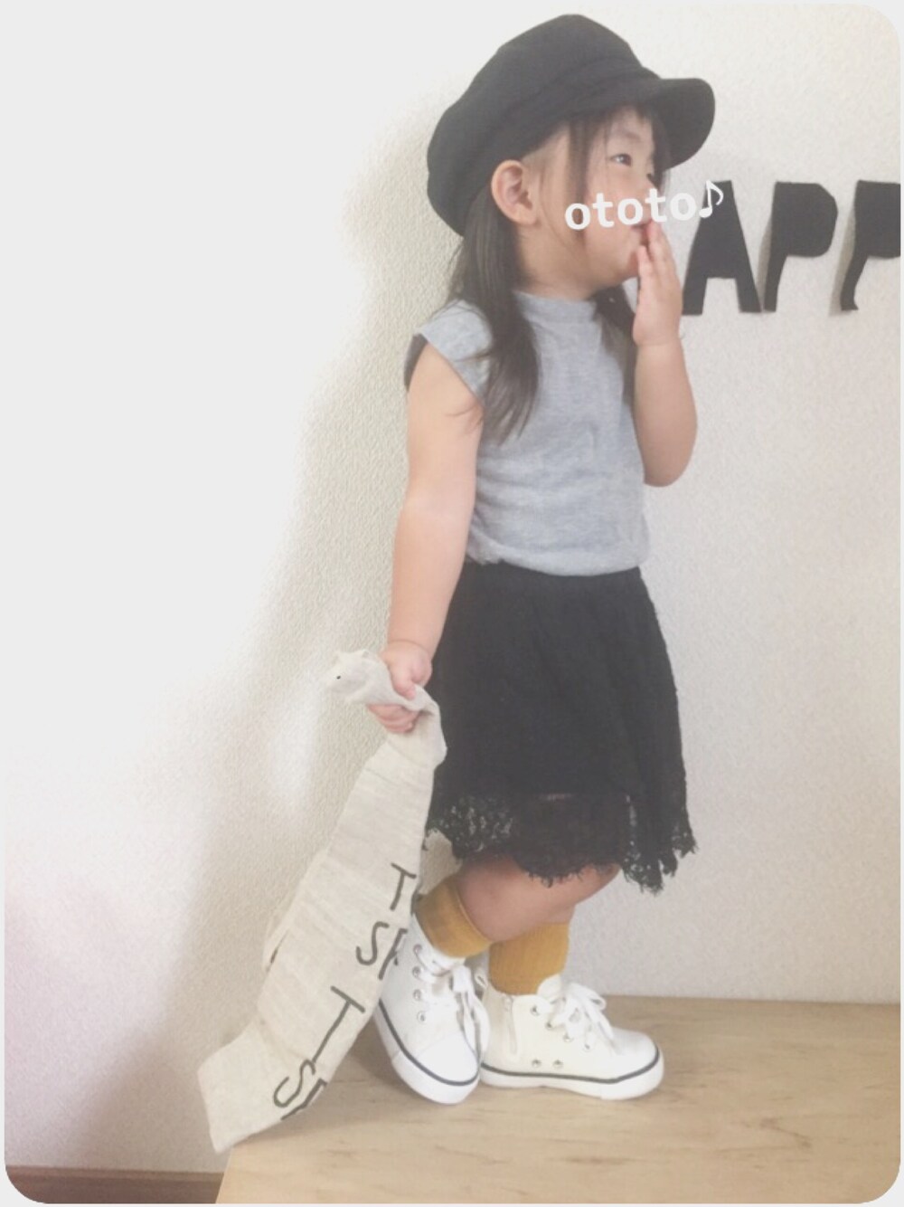 いいねやsave そして覗いていただきありがとうございます♡ ブラック×グレーに からし色の靴下を♡ 85.5㎝ 14㎏ □トップス S □スカート 90㎝ □スニーカー 15㎝ □マリンキャップ M