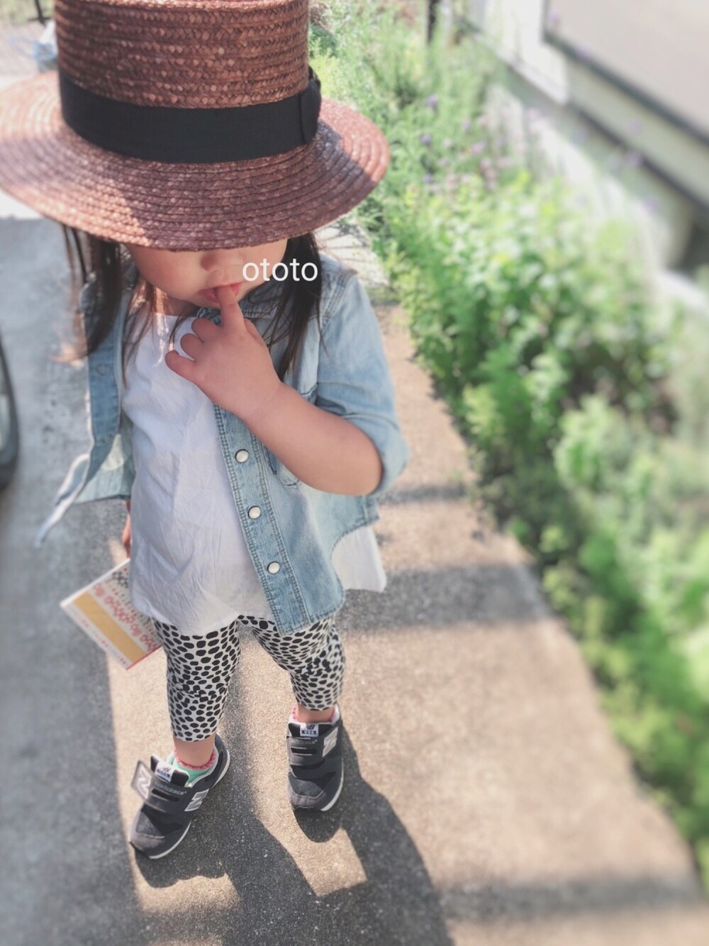 いいねやsave、follow そして覗いて頂きありがとうございます♡ 去年のカンカン帽がギリギリ入ったー‼︎w 95㎝ 15kg □ジャケット 18〜24m □レギンス 105 □スニーカー 16