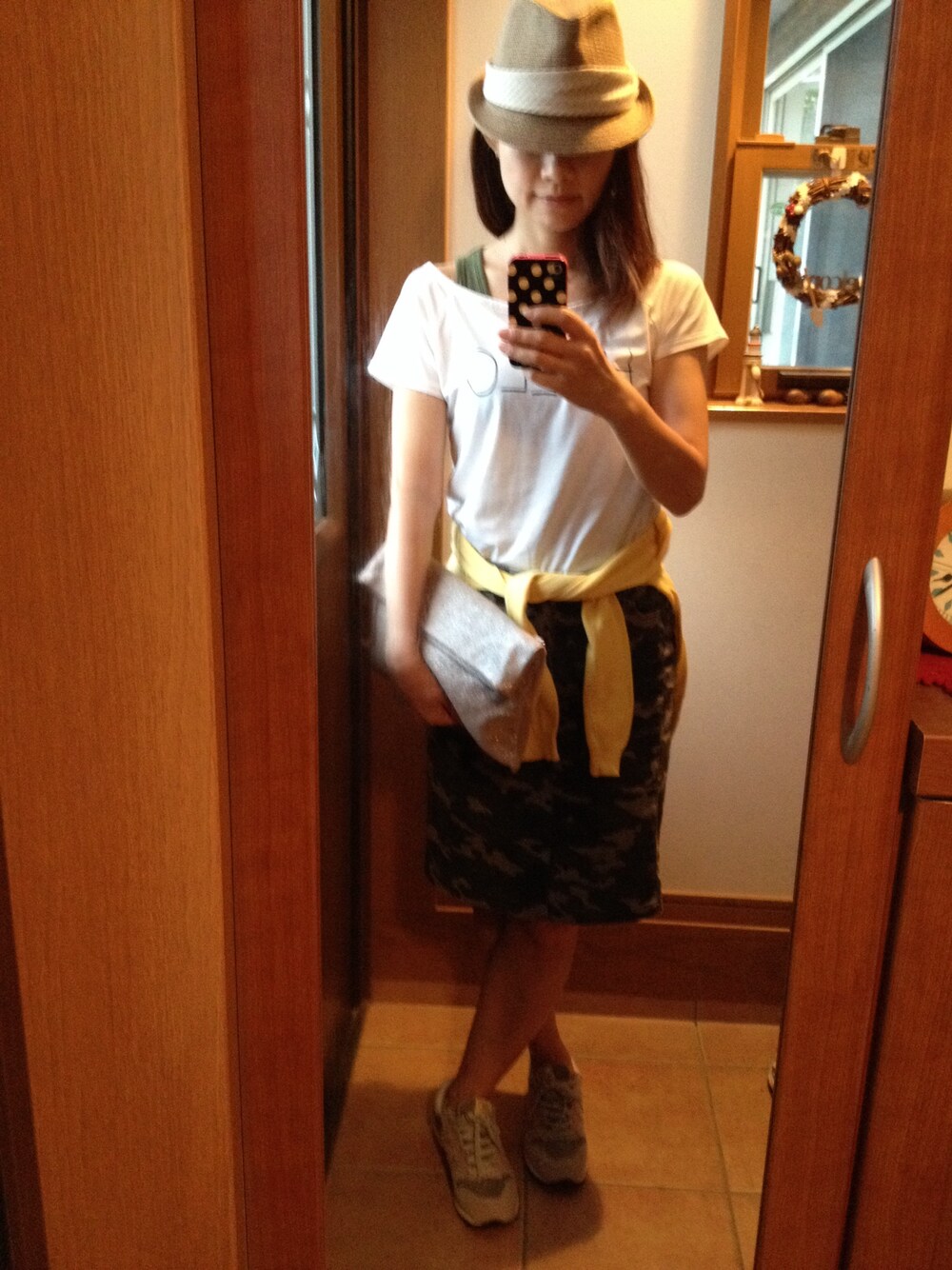 クラッチバッグは バンヤードストームのベージュにラメ入り 気に入ってるけど 荷物多めなのであまり出番なし(u_u) 明日の分の迷彩スカートで(笑) TシャツVIS