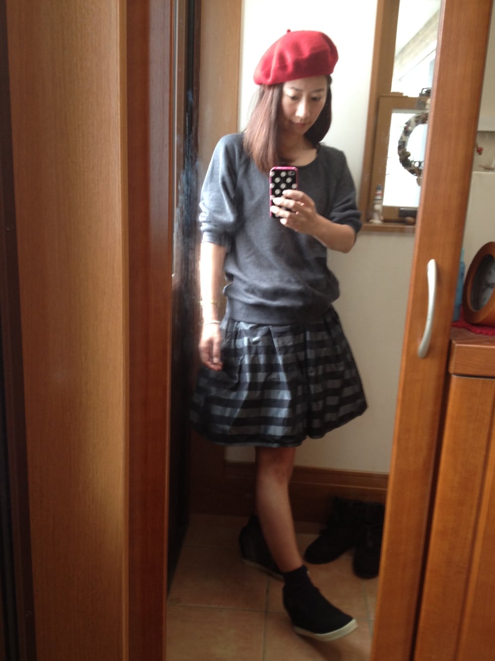 ベレー帽って… こんな被り方でいいんだろうか? いつも悩む…誰か教えて(笑) トレーナー ビューティーアンドユース スカート テチチ