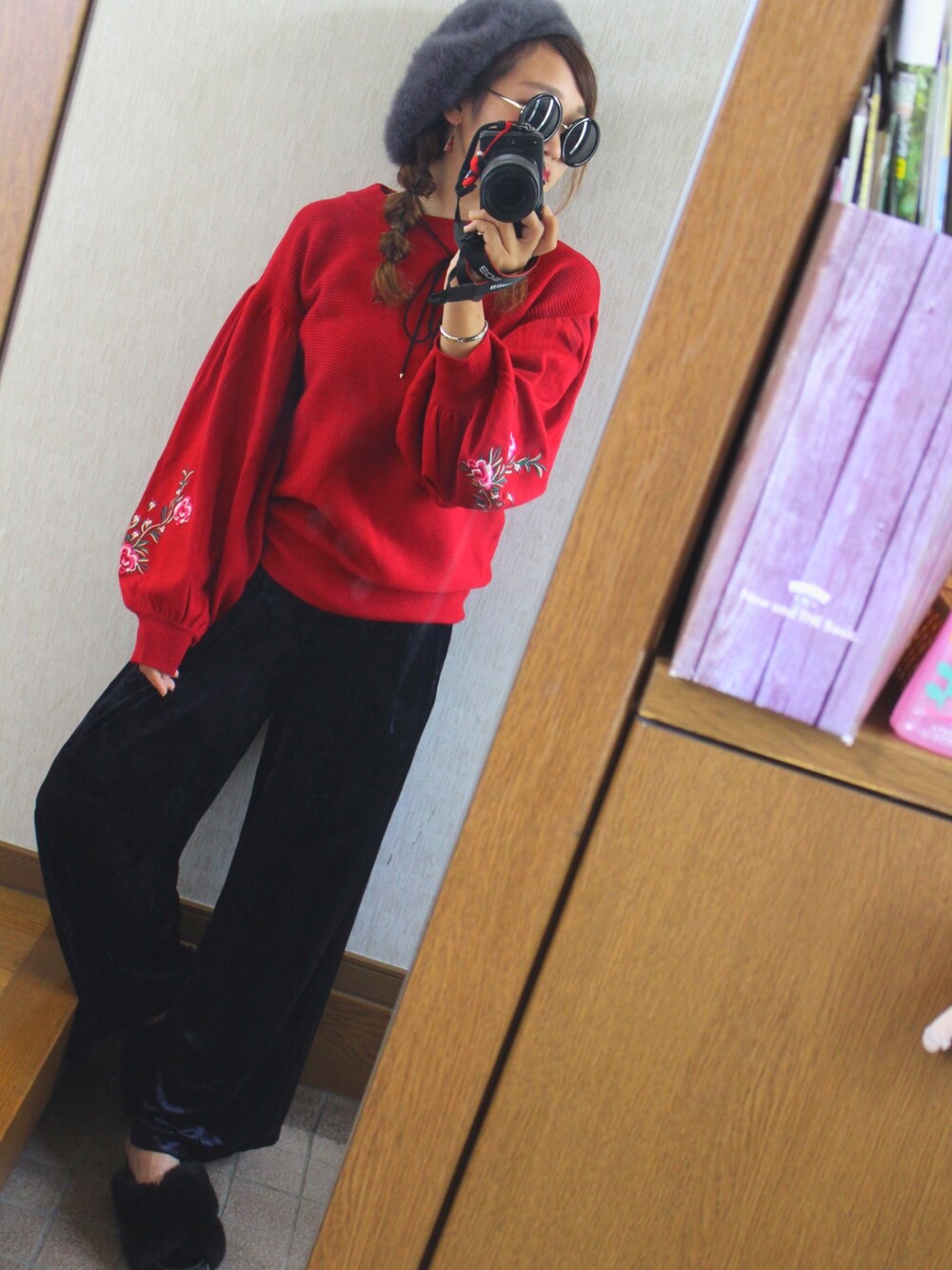 いいね、フォロー ありがとうございます😊(´∀`) オーーールジーユー(´∀`) 今年めっちゃ刺繍トップスあるなぁ🤔 ベロアはクラッシュで なんか可愛いから買ってしまった😇 ベレー帽かぶったら まとまった自分的に(゚∀゚) おわり😀