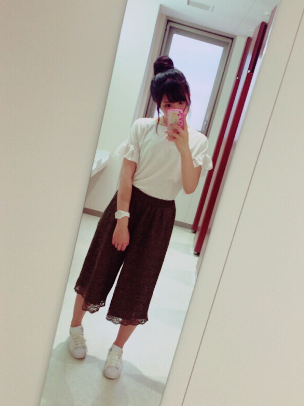 こんばんは🌝 今日は雨でしたね☔️💭 くちゃくちゃになるので おくれげ✖️おだんご で学校にいきました( ´・ᴗ・` ) お靴はお気に入りのスーパースター🙆🏻👟 雨に濡れたので洗って乾かしました笑 トップスは袖元のふりるがガーリーで お気に入りです( ´・ᴗ・` ) ガウチョもカーキーのレースになっていて 履きやすい上にラフになりすぎなくて いいですよー☺︎ 明日は晴れますように🙏🏻 Good bye🙌🏻 insta melo.h.t