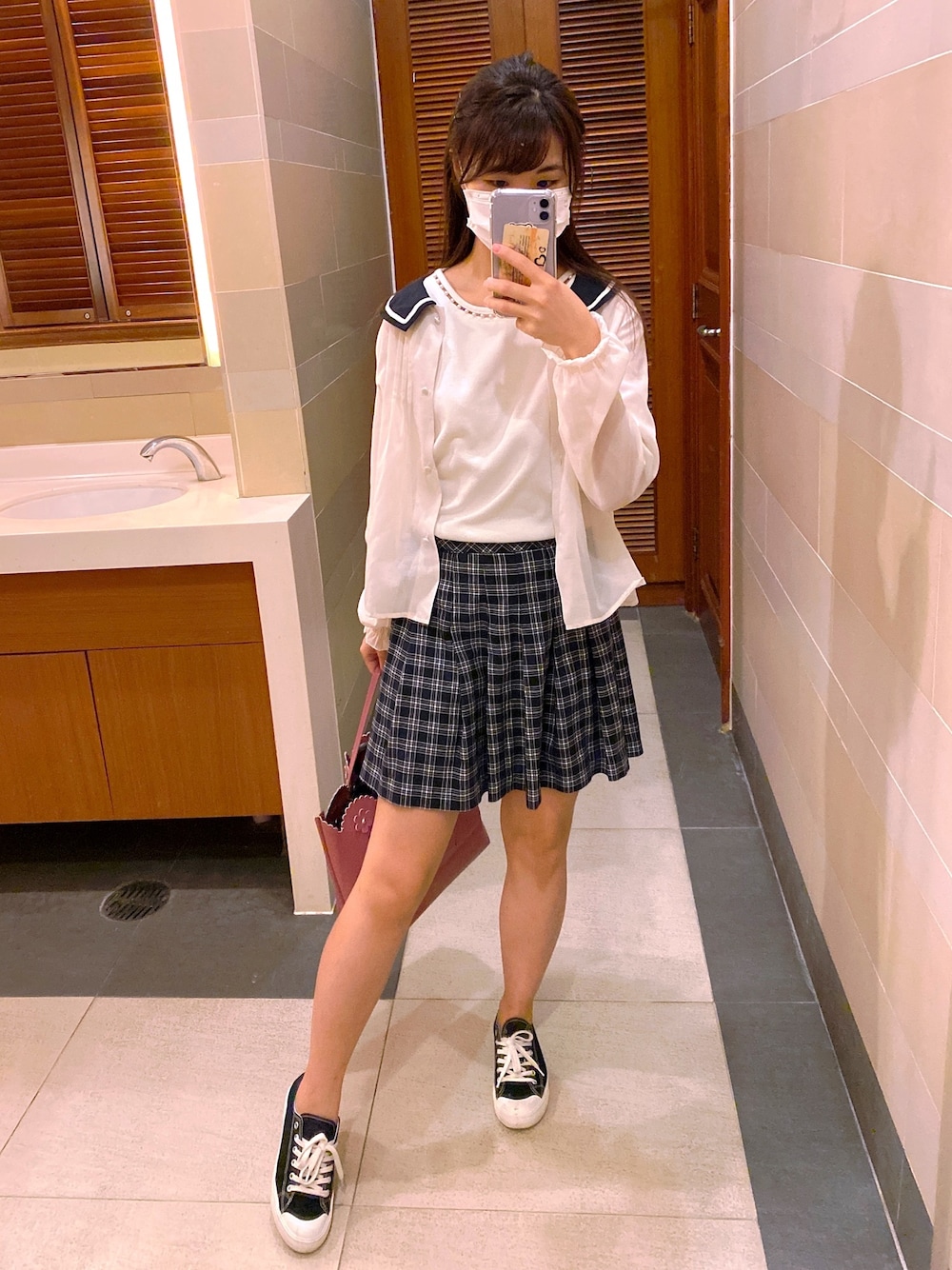 可愛いカジュアルコーデ このH&Mのチェックプリーツスカートは着痩せ効果があるんだ
