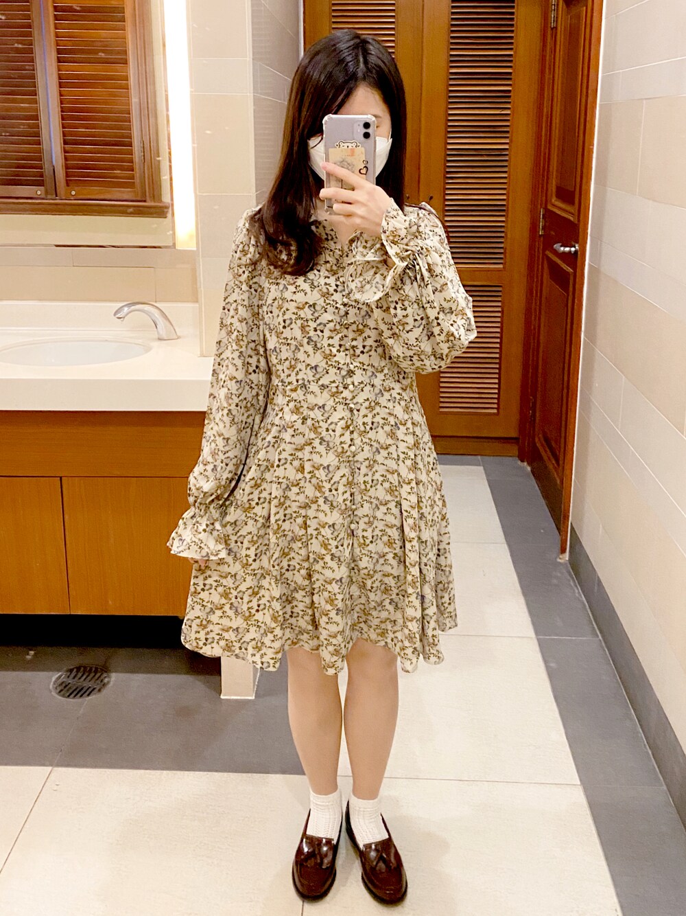 最近買ったハルタのタッセルローファーを着た☺️めちゃ可愛い 寒いのでアツギの素肌感ベージュストッキングも着たけど、全然見えなかった!すごい!