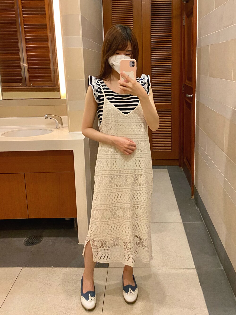 Melomeloのワンピース「SET2点レースキャミワンピース+カットプルオーバー *」を使ったコーディネート