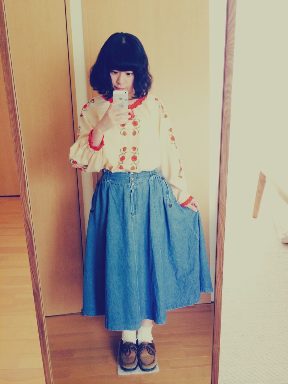 袖口にたっぷりあしらわれたギャザーと、雛罌粟の愛らしい刺繍がお気に入りなブラウス。 今日は一日お休みでお天気も良かったので、自転車に乗ってパン屋さん巡りしました。 焼き立てのパンの香りにおなかを空かせながら、どれにしよう、これも美味しそう、って贅沢な悩みに耽るのがとっても楽しいのです。
