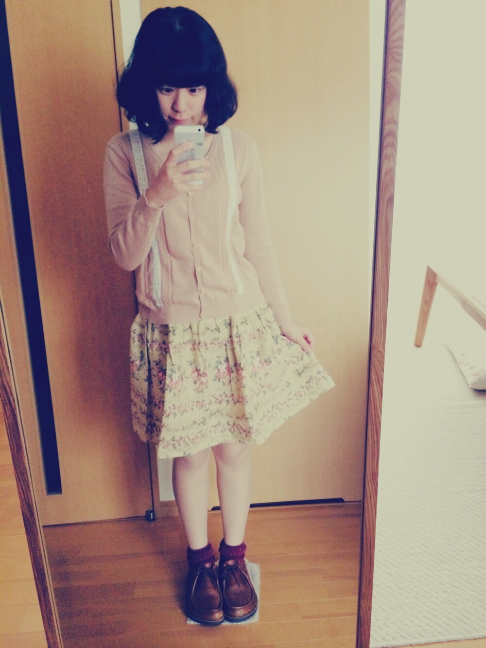 あやぺのカーディガン/ボレロ「ピンクベージュのカーディガン」を使ったコーディネート