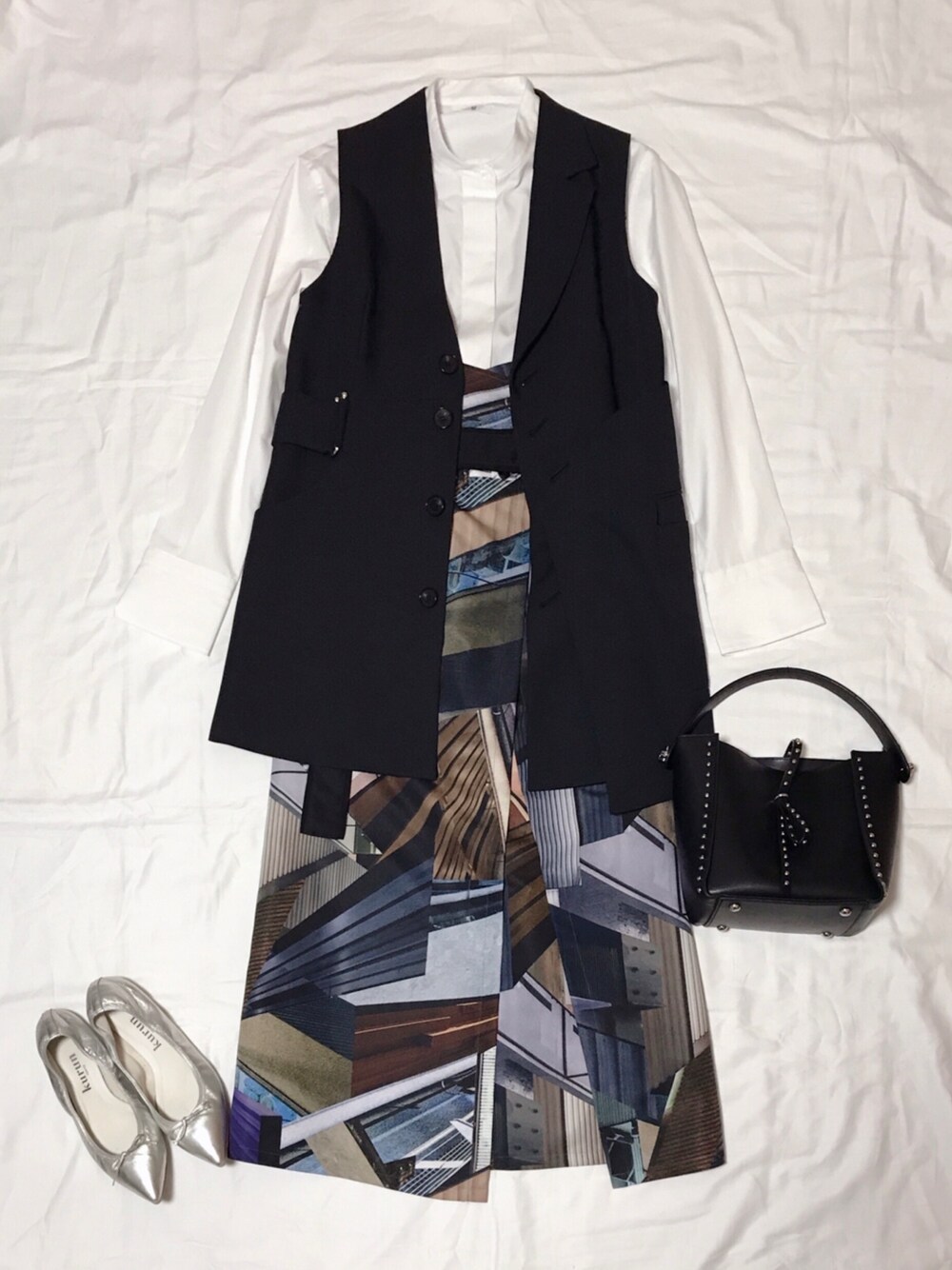 MAHOのベスト「クラートレイヤードベスト」を使ったコーディネート