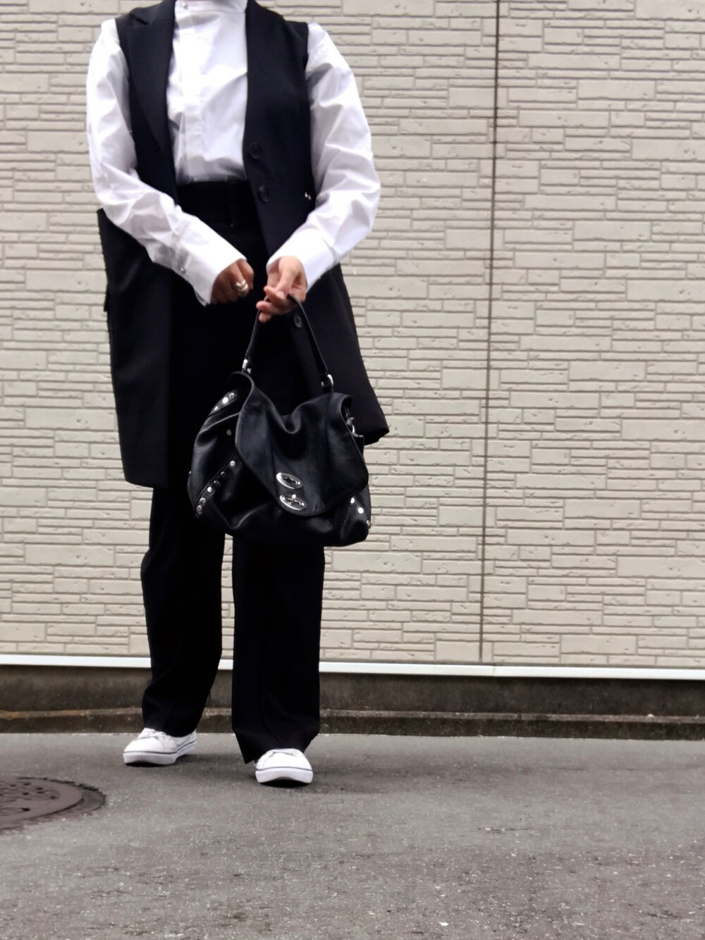 MAHOのスラックス「ウーリッシュソロストレートパンツ」を使ったコーディネート