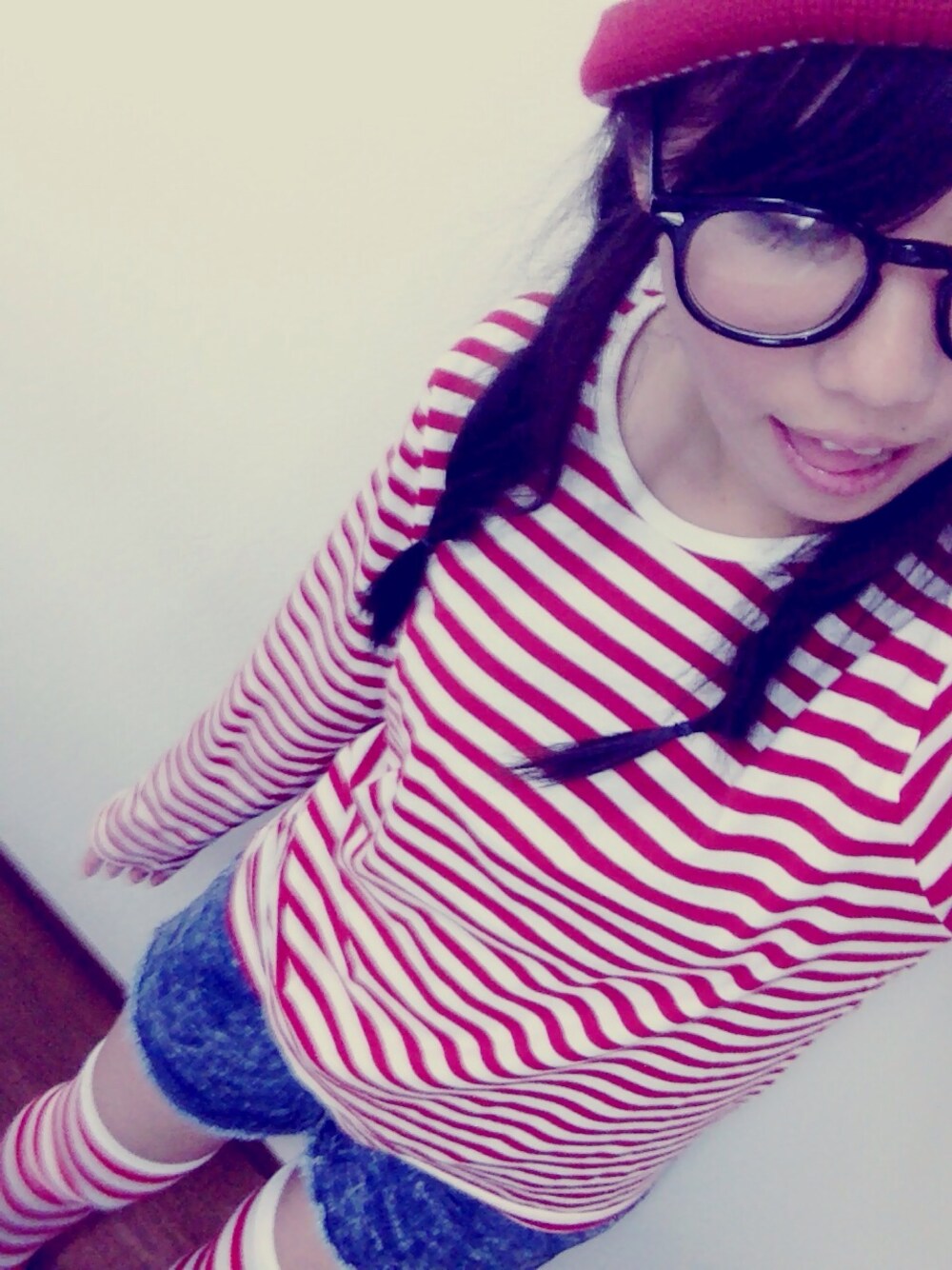 職場のハロウインでウォーリーに変身♡ ロンTとニーハイは楽○で、 メガネと帽子は39マートで買いました☆ 今日は早く仕事終わったし、 今年初めてぐらいにpartyがないので お家で1人仮装大会するで! みんなも仮装しよーよ!笑