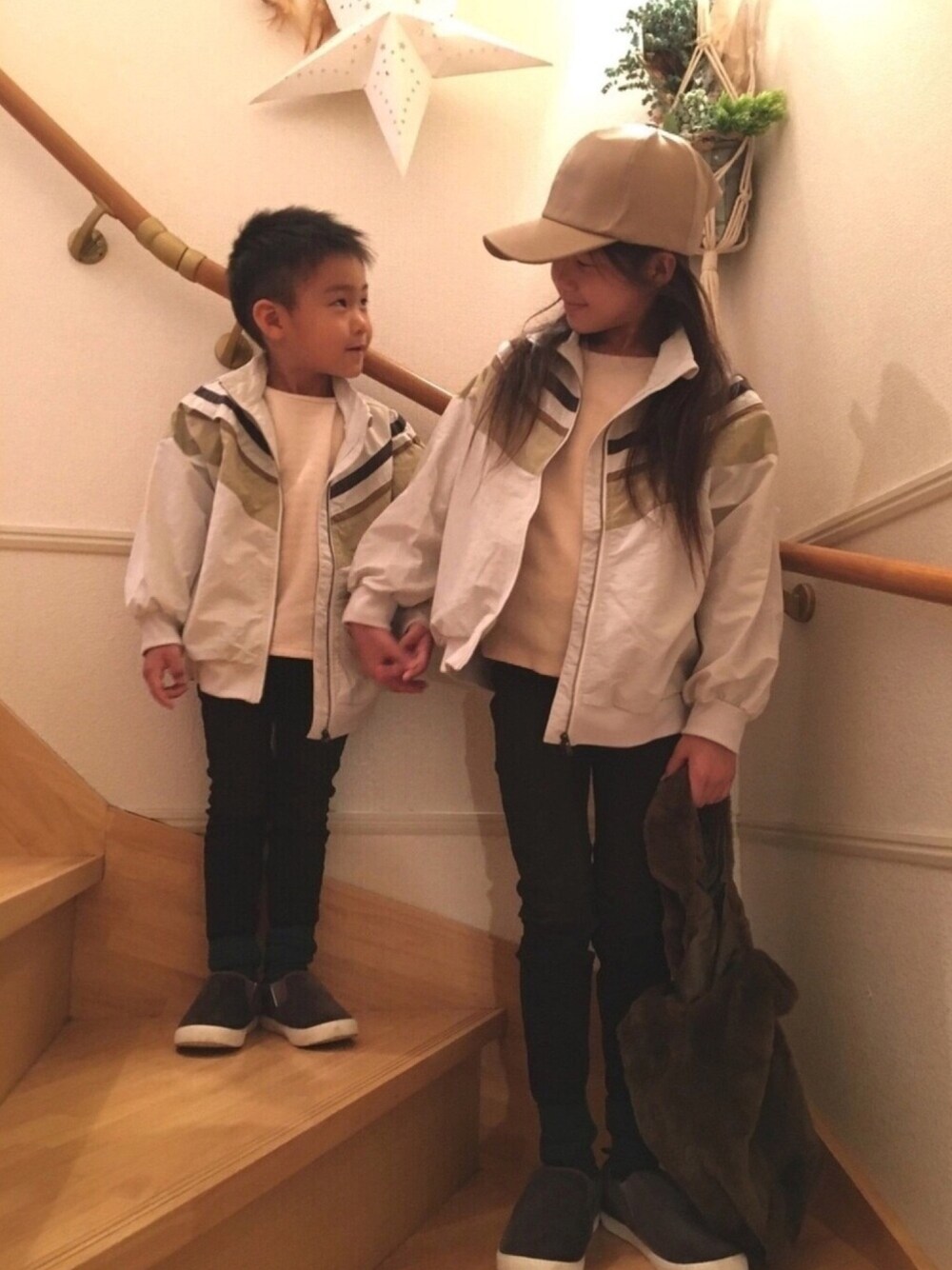 🏷..レギンス 👩🏻👦🏻ベージュが欲しかった BREEZEのウィンドブレーカー。 汚されそうと思いながらも、 白を購入。うん、悪くない! 中のインナーは、 モコモコで暖かい🐏 弟くんは、肌触りがいいものが 好きです💕 🧢レザーキャップは、母と兼用。 うん、姉さんのが似合う! 靴下は、よく見えないけど グリーン🌵です。深緑。 今日は、喧嘩ばかりの日。 やんなるやんなる〜 うるさいうるさい〜
