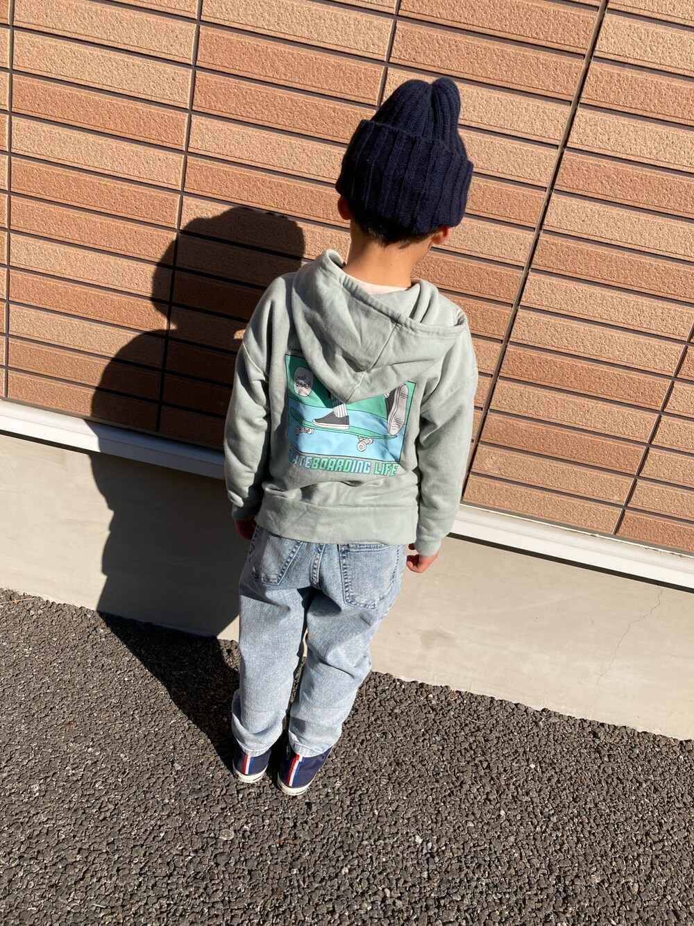 👦🏻ぼくちゃん単品コーデ バックプリントがかわいい MPSのパーカー🤎 パステルな色合いも好きです! 生地も良し、毛玉もなし!🙆♀️ 天気がよかったので、 思う存分体を動かしました〜